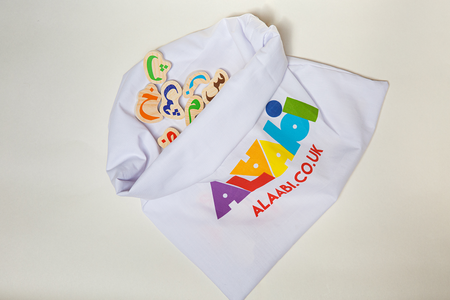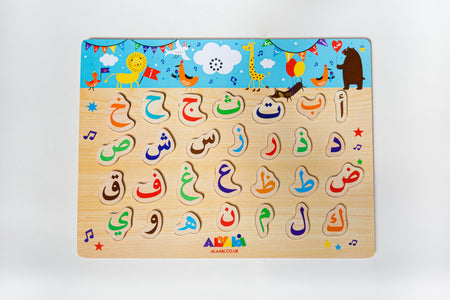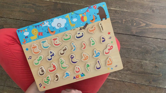 Le son est émis par chacune des lettres lorsqu’elle est remise à sa place. Le son a été spécialement développé avec des enseignants de la langue arabe afin de fournir un accent neutre de l’arabe classique. La découpe des pièces suit la forme des lettres et elles sont également imprimées sur la planche.