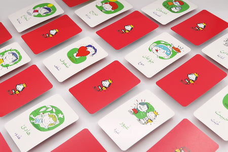 Our pack is designed to help children widen their vocabulary the fun way in Modern Standard Arabic (MSA fusha). You can adapt your Vokalimat game’s length and complexity level thanks to the two-sided board with 96 “vocabulary” cards.