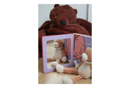 A modern, bright and vivid expression of love. Mothers and fathers show love for their little ones in endless ways starting with the whispers of sweet nothings into their ears as babies. My heart (ya albi), my duck (ya batta), my moon (ya amar)... this book, written in rhyme, reads like a lullaby you want to repeat over and over again. Your babies will love turning the beautiful pages of this book until... SURPRISE... the last page reveals a large, child-safe mirror for baby to discover himself. This allows baby to build self-recognition and develop focus as well as offer an opportunity to build your little ones vocabulary as you point out little eyes, rosy cheeks and the sweetest button nose.